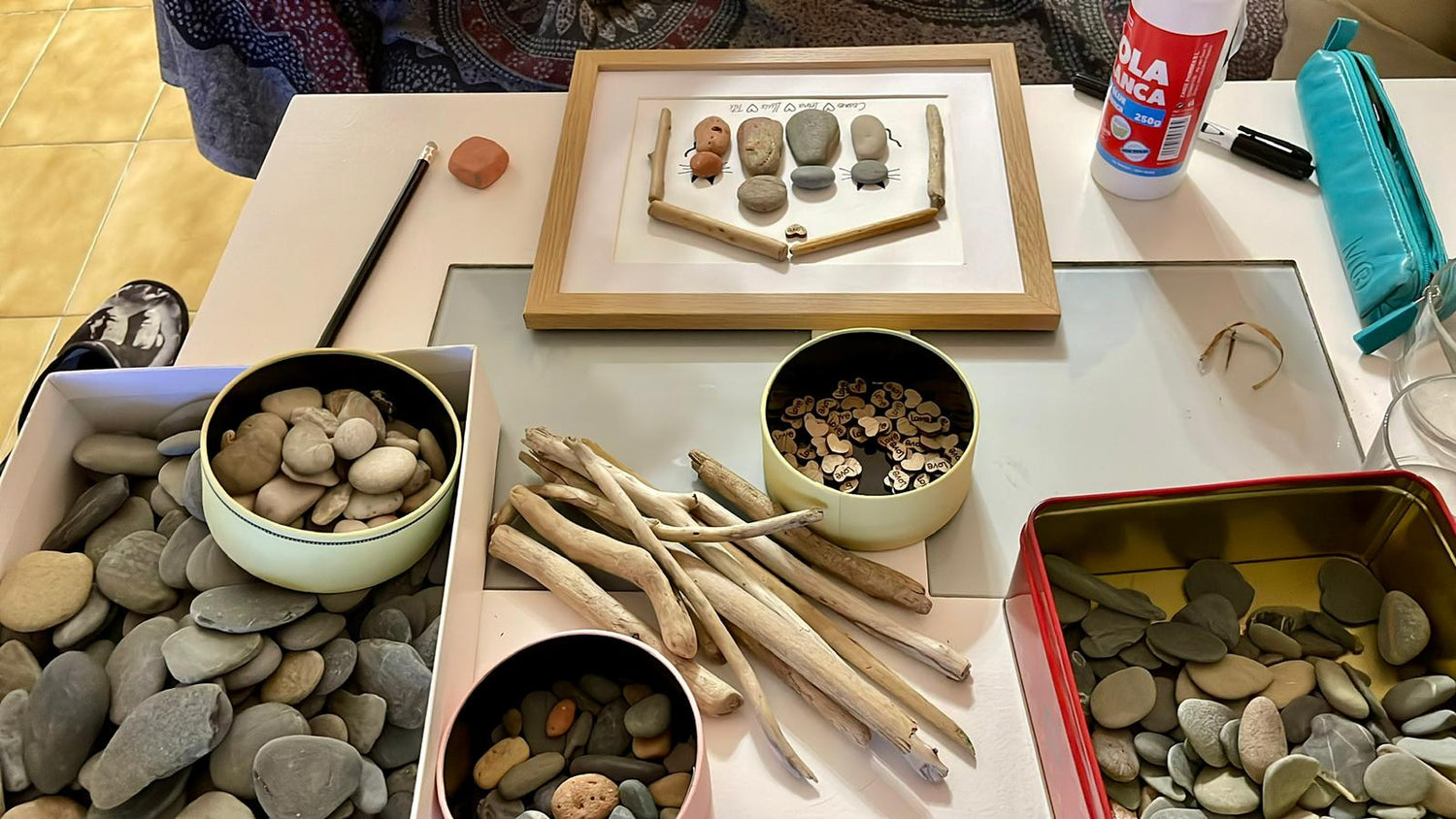 Con estos pequeños cristales erosionados por el mar creamos, los pájaros, flores, pequeños detalles...
