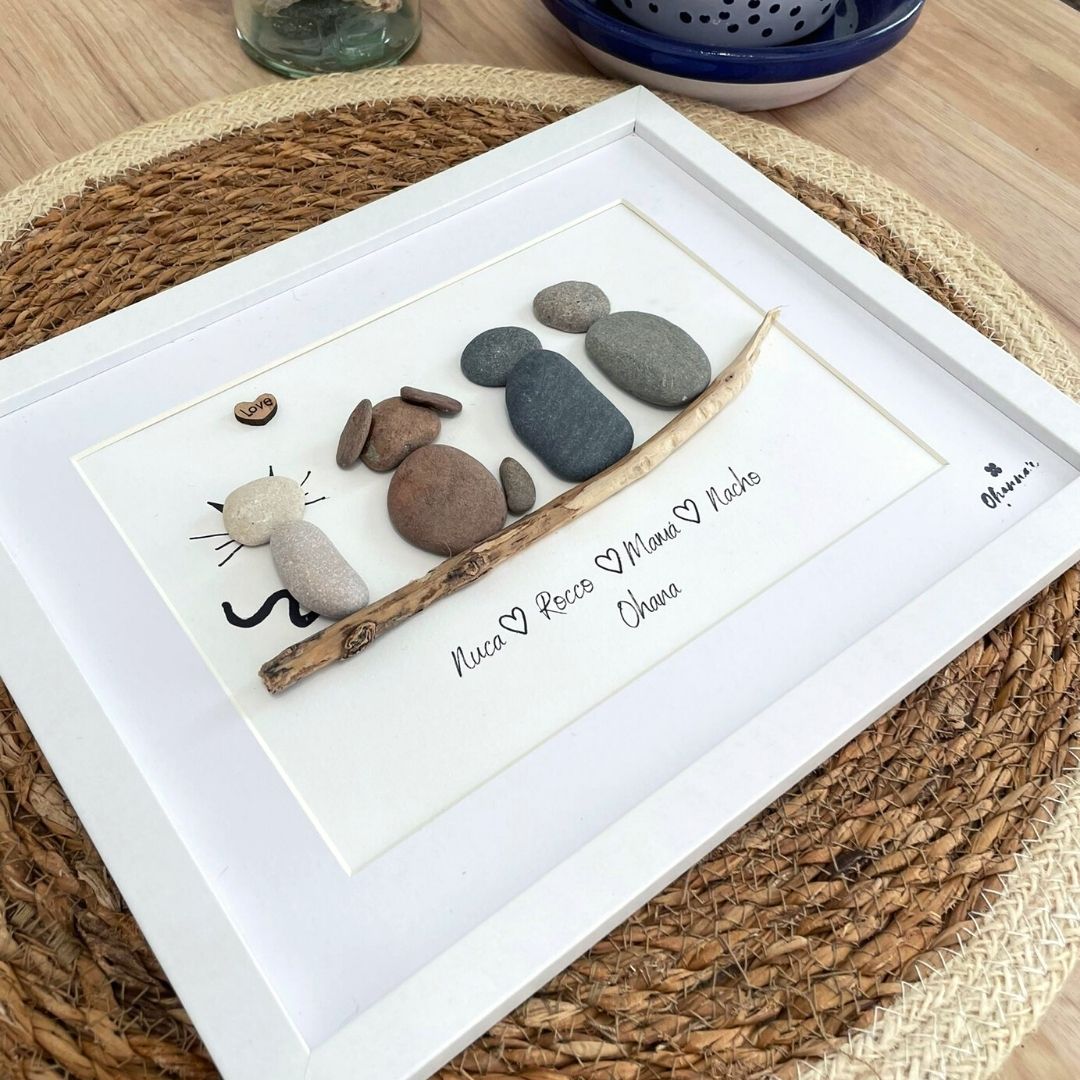En el BOTÓN de personalización, especifique la cita qué le gustaría que escribiéramos, como por ejemplo: Primer hogar o los nombres de la familia (La familia García). (Automáticamente incluiremos un corazón de amor)